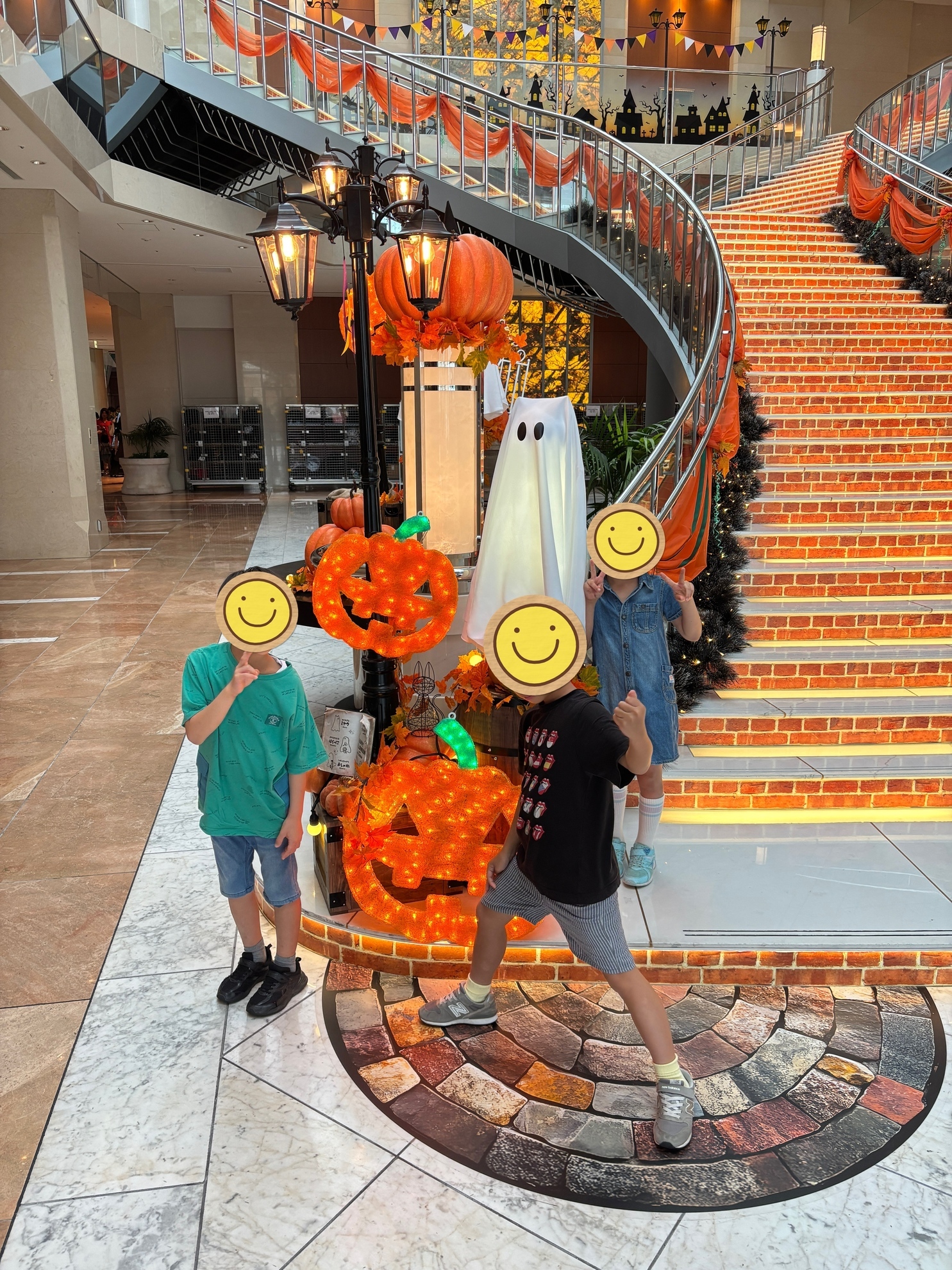 ・ホテルエントランスの素敵なハロウィンの飾り付けに子供達のテンションもアップ!